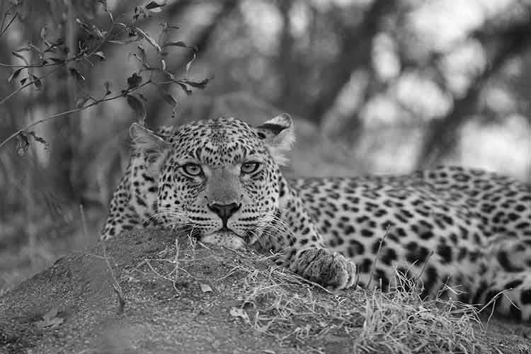 Her blue eyes, filled with curiosity, gaze into the camera as she dozes off on a tree branch.
